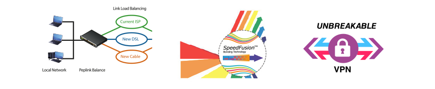 Com a solução de VPN SpeedFusion é possível somar dois ou mais links de internet e agregar a banda para conexão VPN, utilizando a criptografia AES de 256 bits, possibilitando proteção, disponibilidade e alta performance nas conexões site-to-site ou full-mesh.
